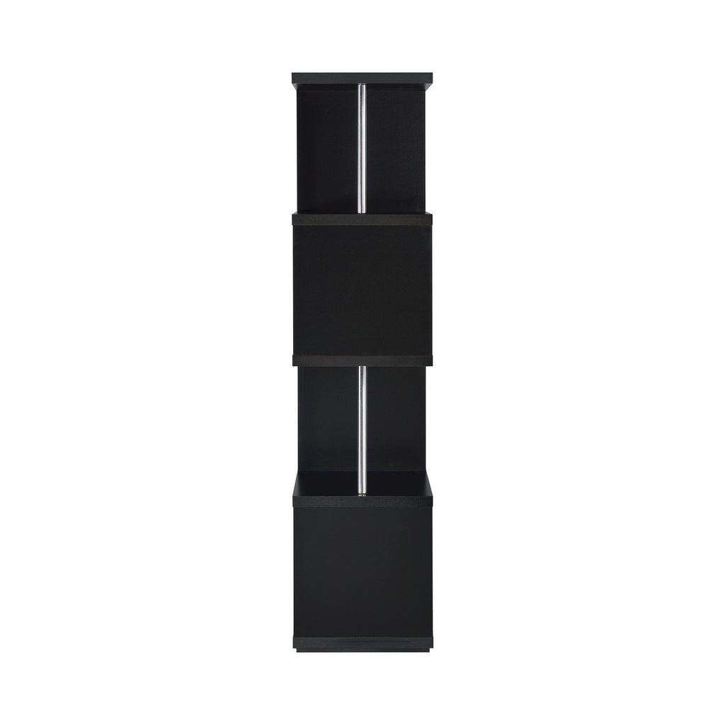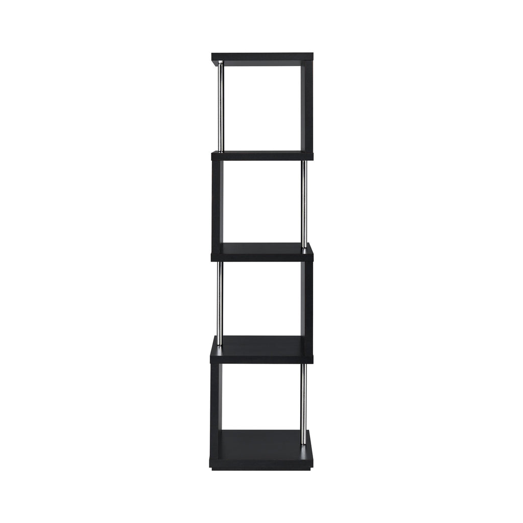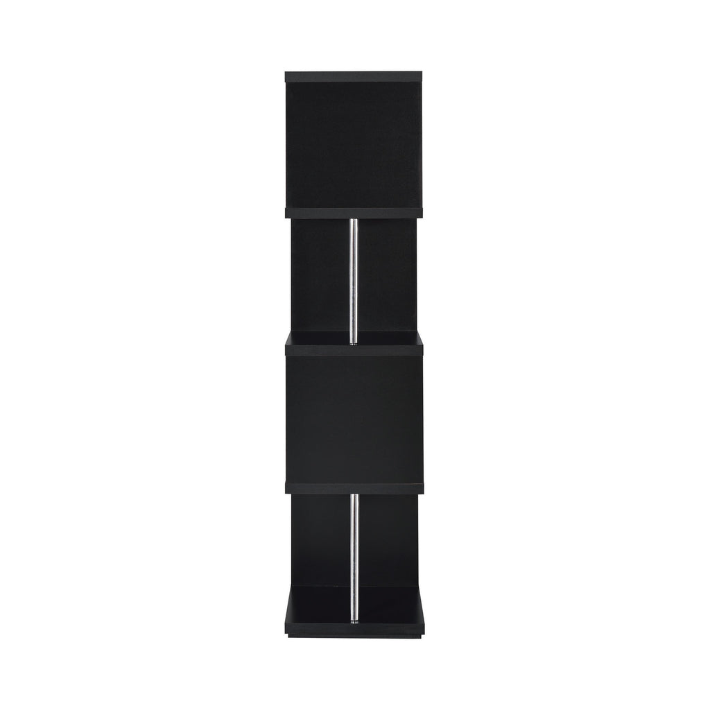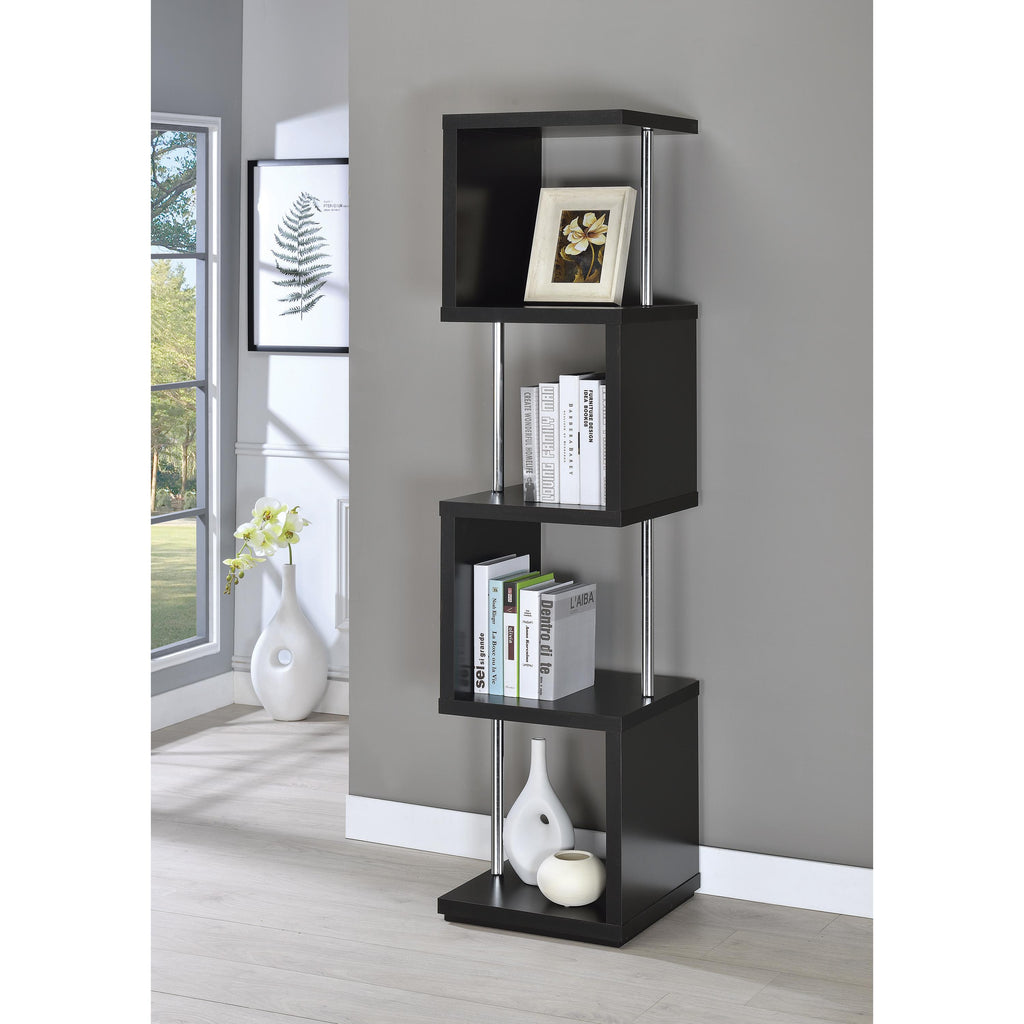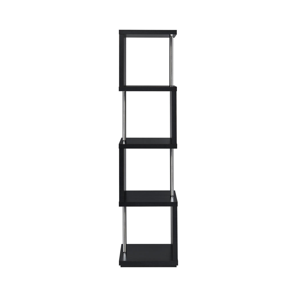 Go with the flow in a modern space with an edgy, artistic look. This four-tier bookcase is a great option for a compact space. Enjoy a modular, geometric silhouette and a choice of finishes. Steel supports reinforce shelving that hosts books and decor. Choose from finishes that intensify the attitude of your custom space.
