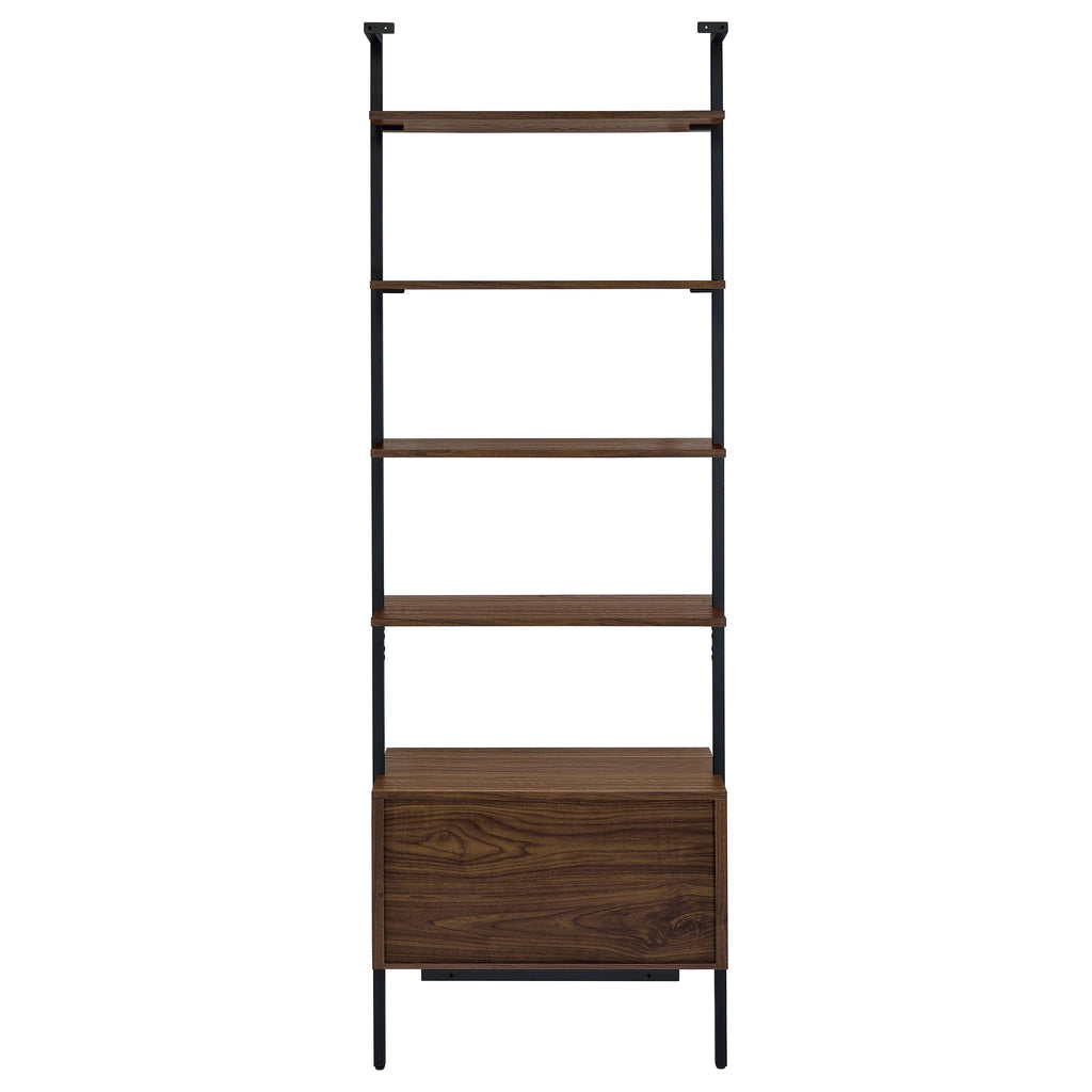 Elevate your home with this modern three-piece bookshelf set, combining sleek design with practical storage solutions. This set features two open shelf bookcases and one bookcase with drawers, each offering a refined and airy ambiance that complements any contemporary space. The open shelves are perfect for showcasing books, decor, and personal treasures, all set within a black metal frame that adds stability and minimalist appeal. The central bookcase includes two drawers, providing hidden storage to keep your space organized and clutter-free. Finished in a warm walnut tone, this versatile bookshelf set is ideal for creating a cohesive, stylish display in your living room, home office, or dining area.