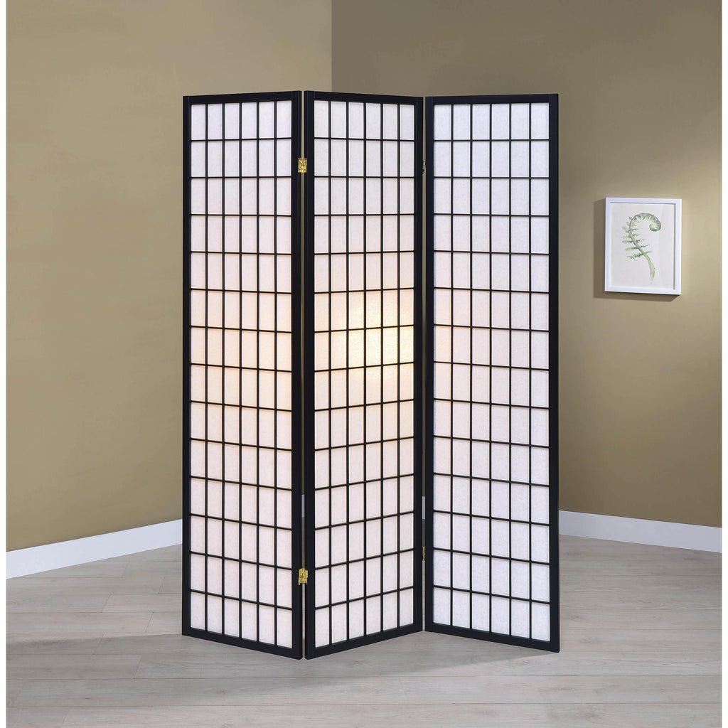This three-panel screen serves a variety of purposes in your rec room or family room. Set it up as a divider to separate a private conversation from the group gathered to watch the big game. It makes for a simple aesthetic background piece by putting a small side table and chairs in front of it. Even set it behind a black or white sofa or love chair. Black frame and contrasting white fabric with block pattern complement a room with dark decor.