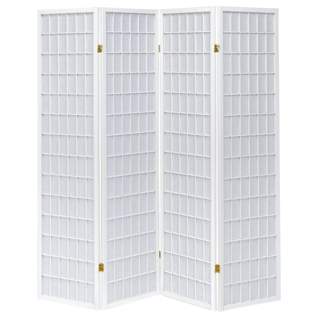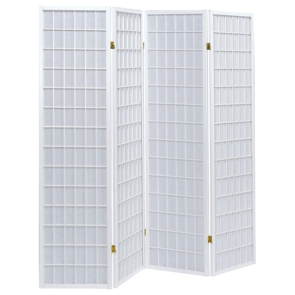 Fresh modern style brings a fun and functional addition to any space. Make this folding screen a staple in a modern living area or a commercial venue in need of privacy screens. With a linear grid design, it reflects a contemporary motif. Four hinged screens contract to offer a total privacy buffer, or fold inward to create a decorative element. Choose a frame finish that complements a custom space.