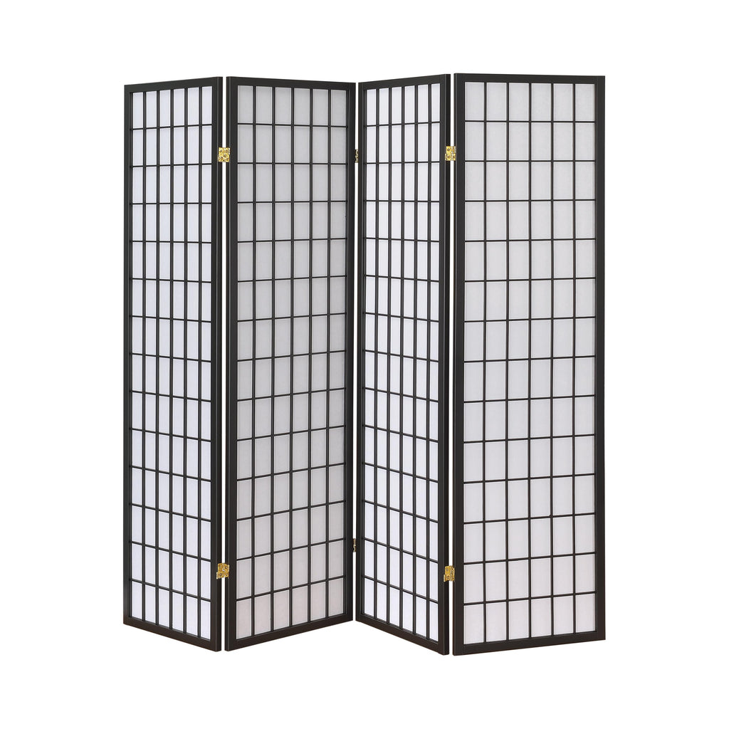 Fresh modern style brings a fun and functional addition to any space. Make this folding screen a staple in a modern living area or a commercial venue in need of privacy screens. With a linear grid design, it reflects a contemporary motif. Four hinged screens contract to offer a total privacy buffer, or fold inward to create a decorative element. Choose a frame finish that complements a custom space.