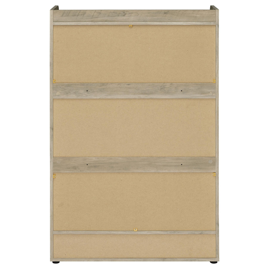 Elevate the organization of your entryway with our dual-tone shoe cabinet, a harmonious blend of practicality and contemporary design. This chic cabinet, crafted from robust engineered wood with a realistic wood-look laminate, offers three tiers of shelving for your footwear, each promising to keep your space clutter-free. The sleek top serves as a perfect perch for your decorative touches or daily essentials, while an additional compartment at the base discreetly takes care of extra storage needs. This cabinet seamlessly adapts to your home's aesthetic, ensuring style and function walk hand in hand.
