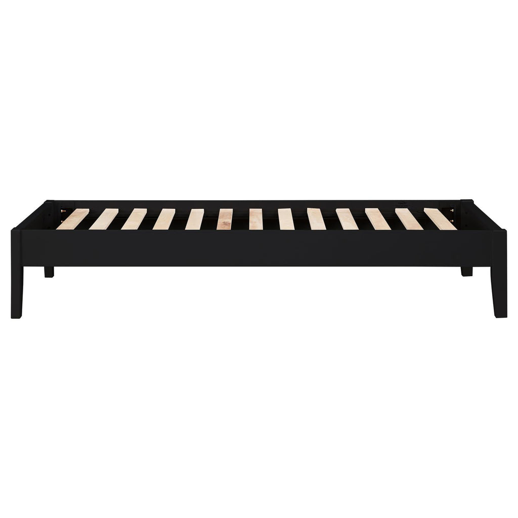 Clean lines in a simple transitional style with this platform bed. A perfect addition to existing modern bedrooms, the simplicity of this bed frame lends itself to whatever decor color palette you choose. The crisp finish maintains a dynamic and elegantly understated expression fit for bedrooms of children and adults alike. Flush side panels and tapered legs offer a sleek silhouette and modest aesthetic. Place this chic bed frame in a contemporary bedroom and allow its chic simplicity to take center stage.