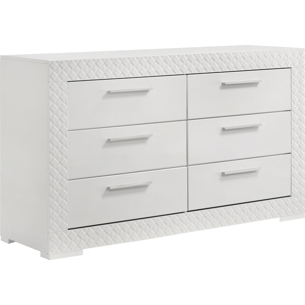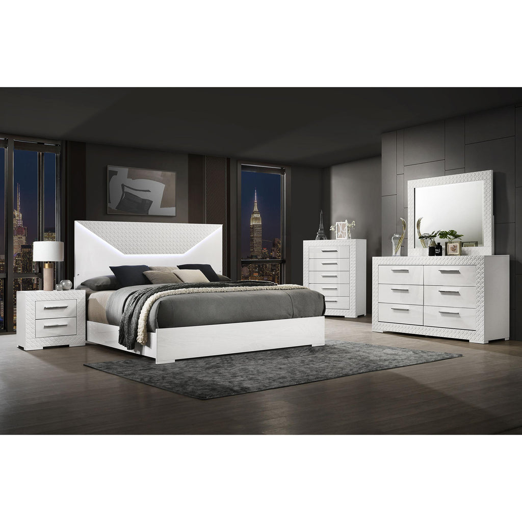 Elevate your bedroom with this five-piece set, offering a perfect blend of classic details and modern highlights. The set includes a bed, nightstand, dresser, mirror, and chest, all finished in a natural pine hue that complements the solid pine wood construction. The bed boasts a vertical channeled upholstered headboard, adding a touch of elegance. Each piece features softly curved fronts, square tapered legs, and antique nickel hardware, creating a cohesive and stylish look. Ideal for larger spaces, this set provides ample storage and timeless appeal.