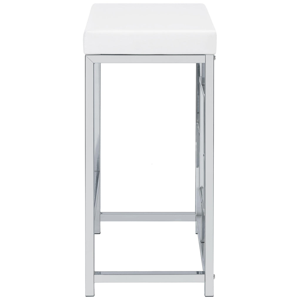 • Three stools are backless, with silver finish bases and faux leather upholstery over foam padding