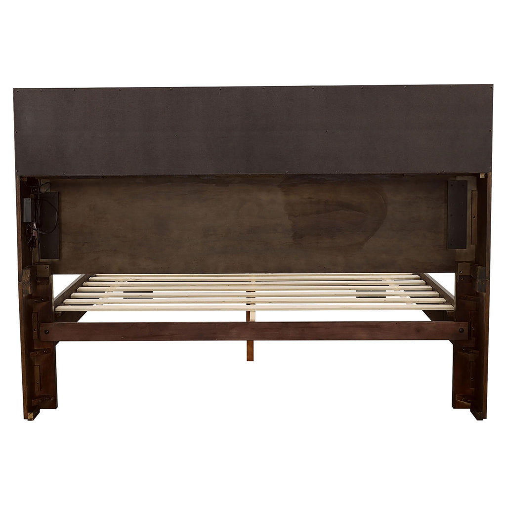 An integral part of Jessica collection, this queen bed is a majestic addition to any master bedroom. The footboard is low with clean, sleek lines that impart a trendy ambiance. Regal headboard includes three cubby squares for unexpected practicality. Bed has a rich cappuccino finish that evokes warmth. From the same collection are an optional chest or side table that matches the bed beautifully.
