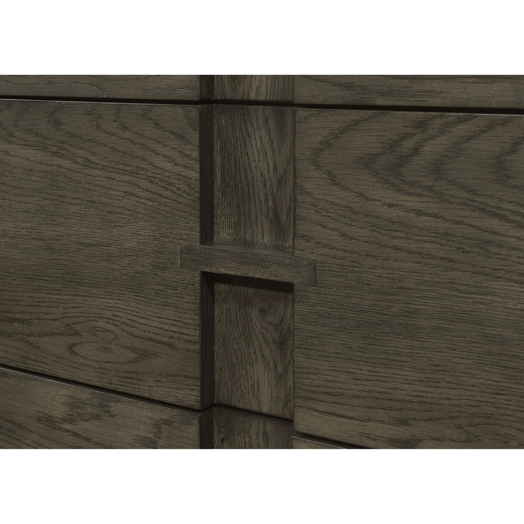 • Sleek dark grey finish exudes modern elegance, while the brown felt-lined top drawers add a luxurious touch