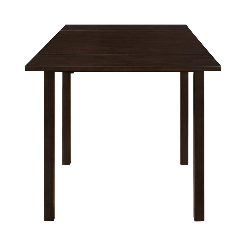 Perfect for a small dining room or kitchen nook, this cappuccino dining table features a classic silhouette. The rich and deep finish warms up even the most neutral of spaces. Fold up the table ends to accommodate for guests, or leave them down for a stunning cafe-inspired look. Straight and sleek, the smooth legs offer a clean aura. Decorate with a vase of flowers for a fresh feel.