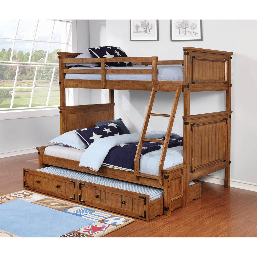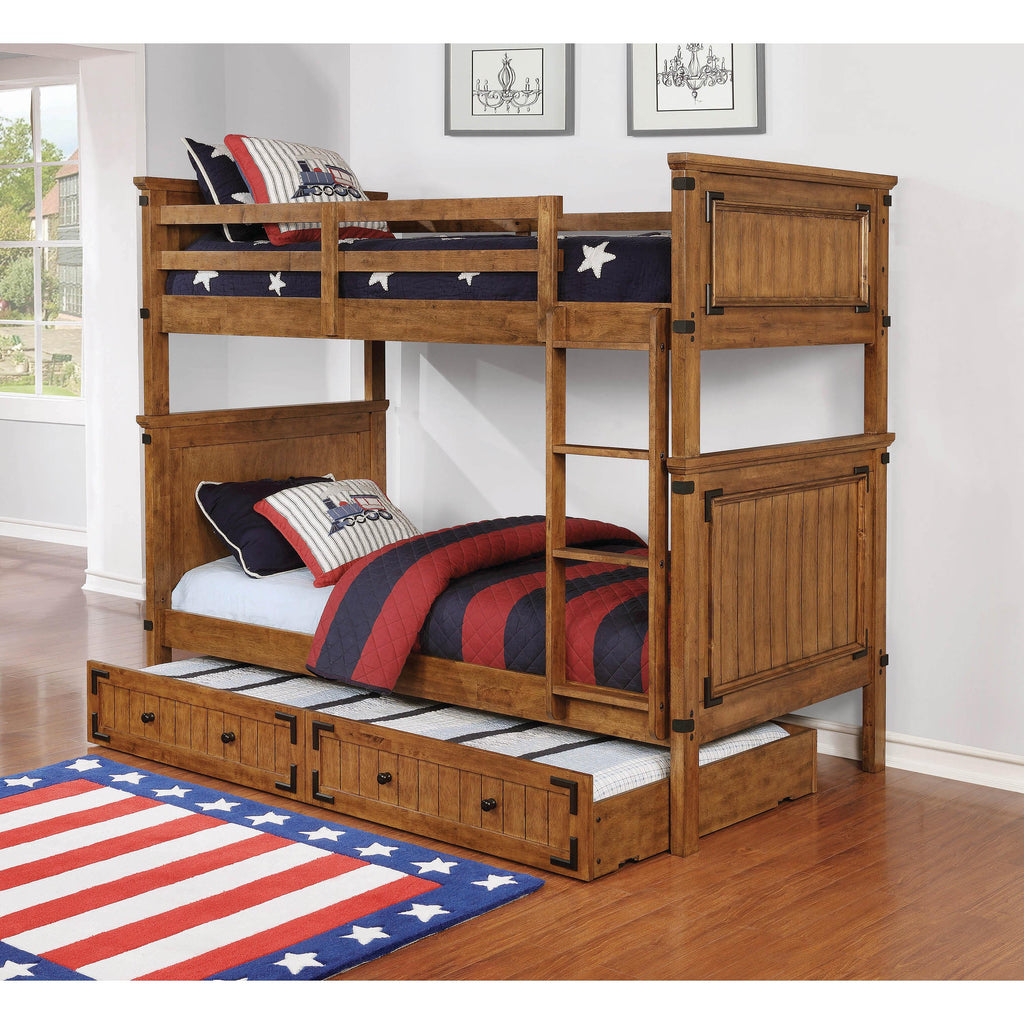 Add versatility and functionality to your daybed with this convertible trundle in a rustic honey finish. This trundle not only provides a cozy sleeping solution for guests but also serves as extra storage space when not in use. Crafted to complement the mission-inspired design of your daybed, the trundle features solid construction with subtle metal accents, exuding both durability and style. Easily transition between storing essentials and accommodating an extra mattress for guests, making it a perfect addition to any living space. With its dual-purpose design, this trundle brings both convenience and charm to your home.