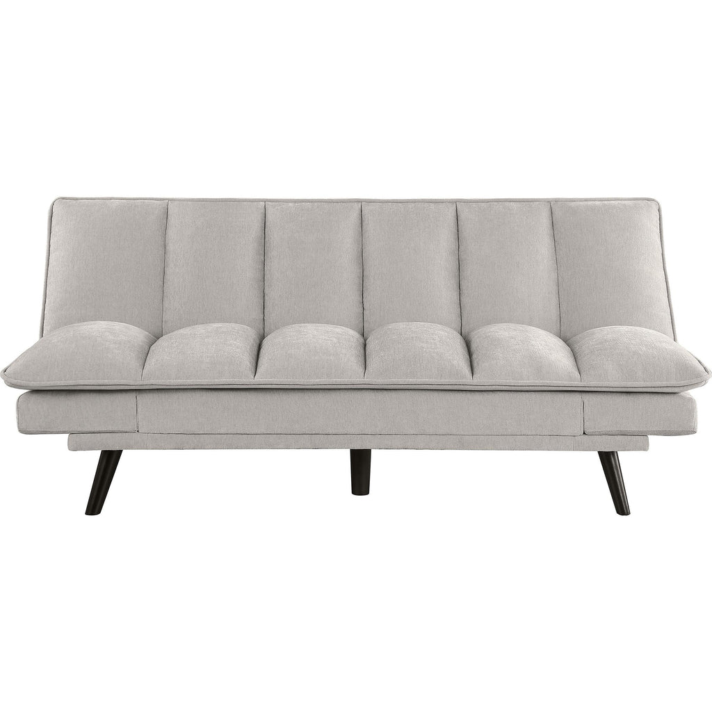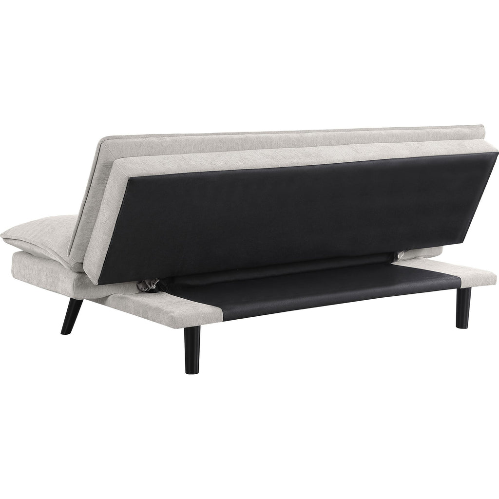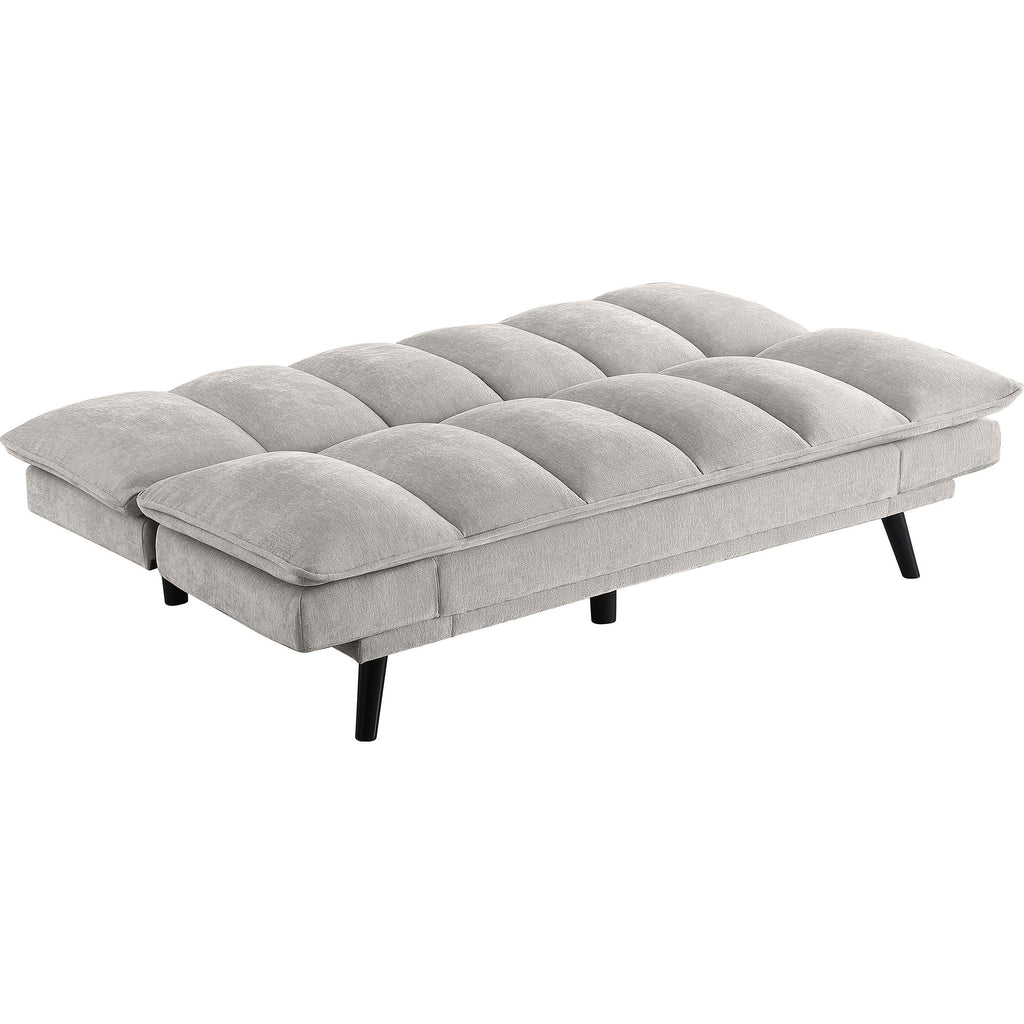 Versatility reigns in a modern sofa bed. Soft upholstery complements perfectly, bringing inviting style to a convertible design. It goes from sofa to bed with a lay-flat mechanism, perfect for a multi-functional space like a home office or compact living room. Tufting adds a sense of structure to the design. Splayed legs receive a black finish, offering a chic look against lighter upholstery.