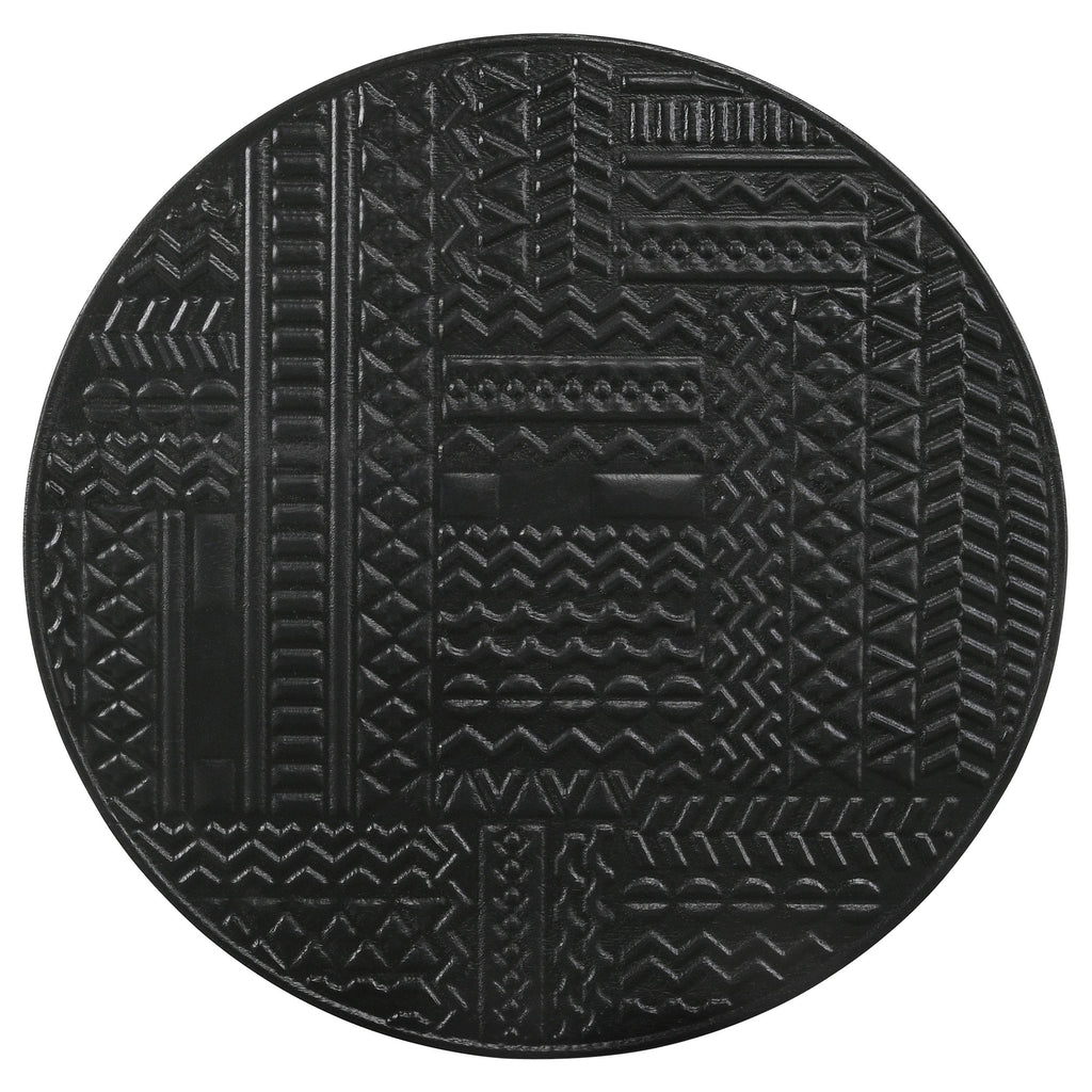 Designed for sustainable homes comes this pair of rustic nesting tables, featuring clean lines and a contemporary feel. Each tabletop is built from solid eco-friendly mango wood for more green-friendly homes and apartments. Across the top of each mango wood surface is an embossed ink blot pattern in a tribal-like striped motif for a global-inspired decor flair. This two-piece nesting table is perfect for compact spaces as well, inviting the smaller table to be slide beneath the larger table, stacked to accommodate extra floor space. Each top is also cradled by a cage-like metal frame in a matte black finish with three slim supports that flare out toward the bottom.