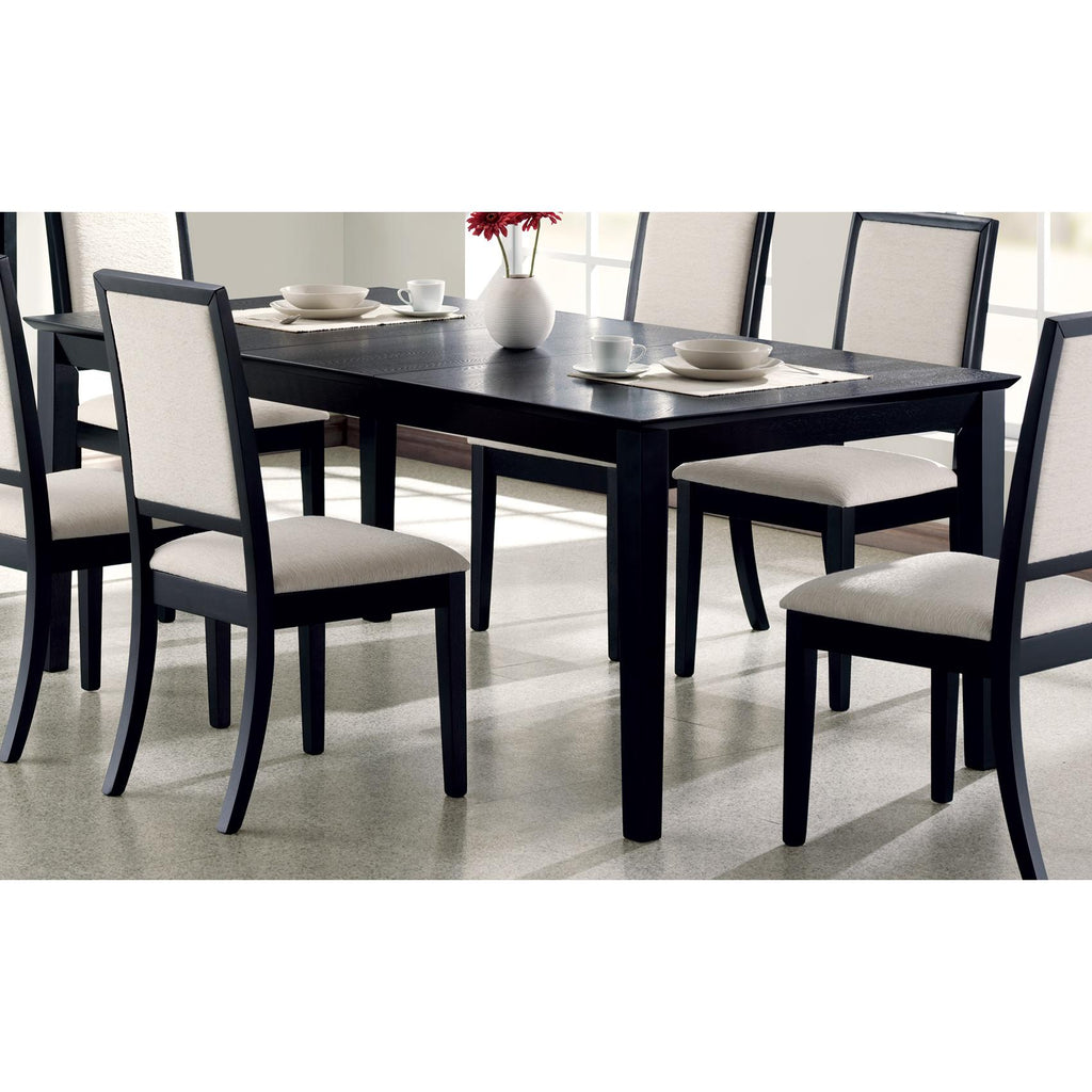 This dining table is perfect for connecting with friends and loved ones over a delicious, home-cooked meal. With its sophisticated design, it adds an element of casual glamour to any home. Its sleek, simple silhouette features clean, crisp lines for a bold, modern appearance. A distressed black finish rounds out its elegant look. Crafted from durable hardwoods and veneer, this table is pleasingly sturdy and strong.