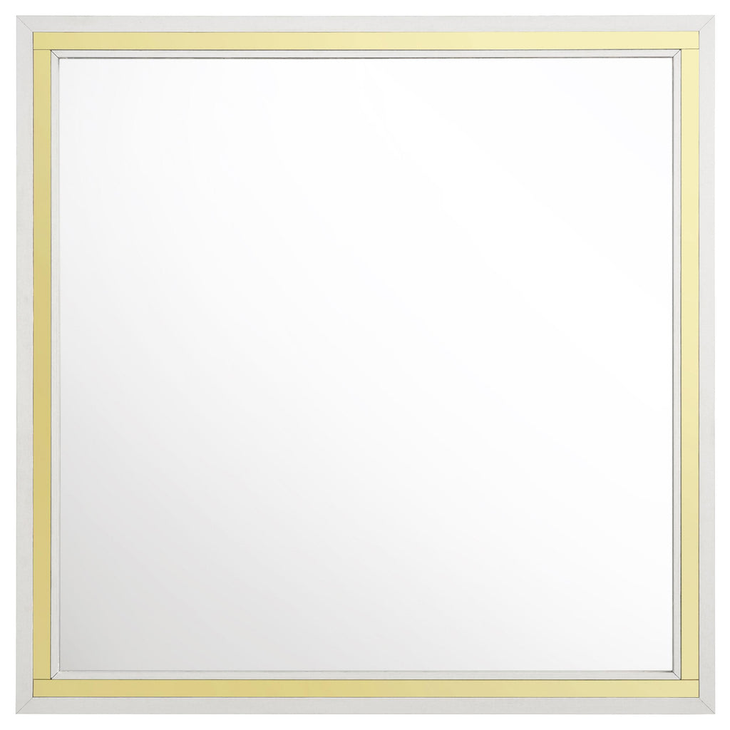 Put a glamorous finishing touch on your dresser with a modern framed mirror. Offering a polished touch of style, the mirror boasts a sleek, squared silhouette complete with a crisp white finish. Gleaming gold finish trim augments the front of the frame, creating a hint of warmth in an elegant bedroom. The mirror glass is flat, offering modern style and ambiance. It's the perfect accessory for a dressing area, creating a great place for touching up your hair or choosing jewelry for the day ahead.
