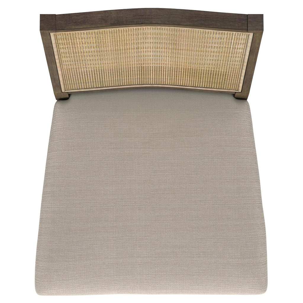 A trio of natural hues brings refined but casual character to a modern farmhouse dining chair. Perfect for friends and family enjoying delicious meals, the chair features a plush foam seat with beige upholstery. Its back is rattan, adding texture and character while maintaining a light, airy look and feel that's rich and breathable. Its classic stance features an armless silhouette complete with a gently angled back and straight, tapering legs. The natural finish of the wood offers a refined but accessible look, perfect for inviting family spaces.