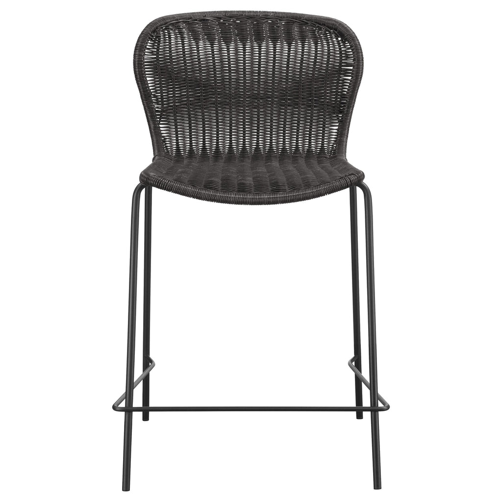 Designed with a mid-century-inspired aesthetic, this contemporary stool offers a charming brown faux rattan seat, nestled in place by an open, airy frame. The seat offers a subtle contoured shape that cradles the torso and offers a comfortable place of rest. Supporting the seat are slender tubular legs in a sandy black finish, pushing the dark tones and hues to create a dramatic, moody feel. Natural elements collide to offer a boho-inspired touch to bars, breakfast nooks and more. Pull this stool up to an elevated dining space for a casual seating arrangement.