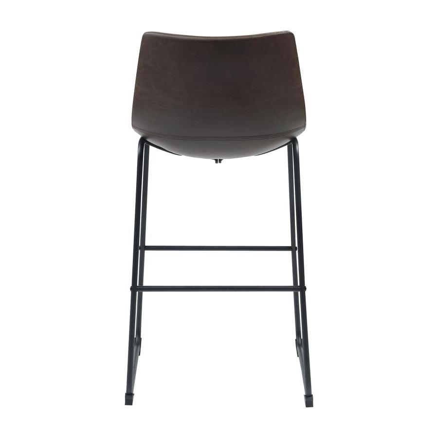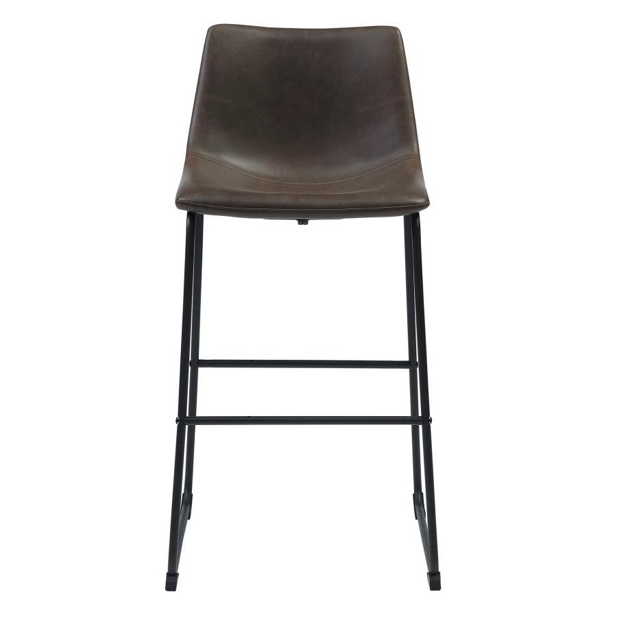 This cozy, casual stool will have you dining in style. With a supportive back and foot pedestal, it offers a comfortable place to enjoy a meal or a cocktail. Its seat is upholstered in beautiful, two-tone brown leatherette. Its base is constructed from high-quality metal in a striking black finish. With a sleek silhouette and a classic design, this stool looks fabulous in any dining area.