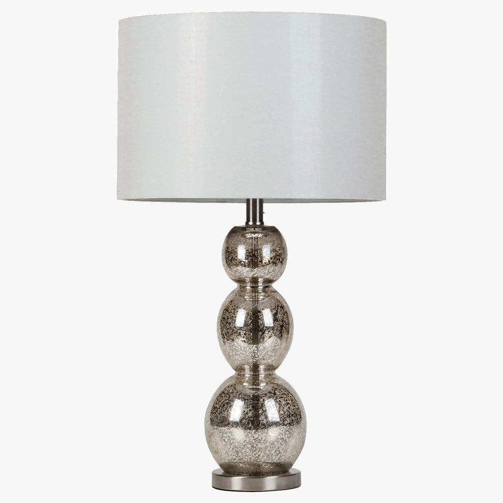 Embrace a love of artistic fare as this table lamp brings a host of elegant, expressive accent to a transitional space. Reflecting a retro personality, its sculpted body gives off an Art Deco flavor and shines with a cool mottled tortoise shell finish. Antique silver creates a versatile and stylish overall finish. A white drum shade adds a perfect finishing touch. Operates with a two-way switch.