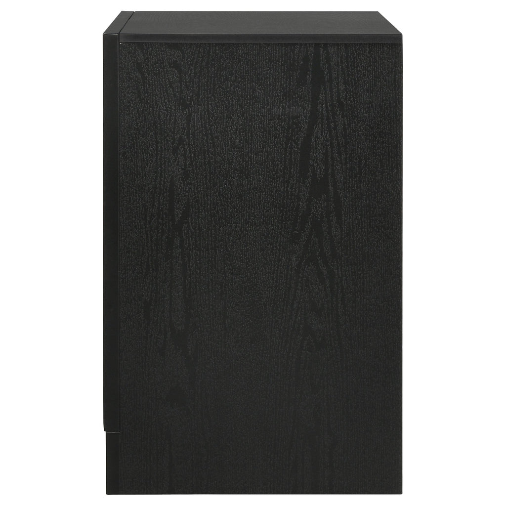 A surprisingly elegant twist embellishes classic charm. Make this nightstand a staple in a transitional bedroom. A shapely base section offers sensual curves that contrast with a linear silhouette. Full extension glides ensure smooth drawer operation. Select from gorgeous finishes.