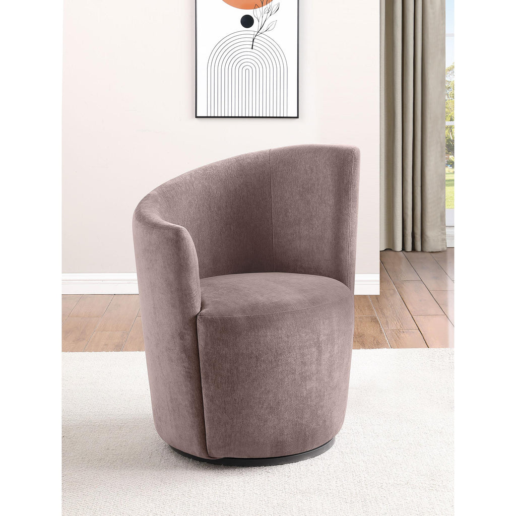 This accent chair’s sculptural silhouette and plush velvet upholstery create a luxurious presence in your living space. Designed with swivel functionality, it allows effortless 360-degree rotation, making it perfect for conversation areas or cozy reading nooks. Its curved backrest and softly cushioned seat deliver indulgent comfort, while the neutral hue ensures seamless integration into various décor