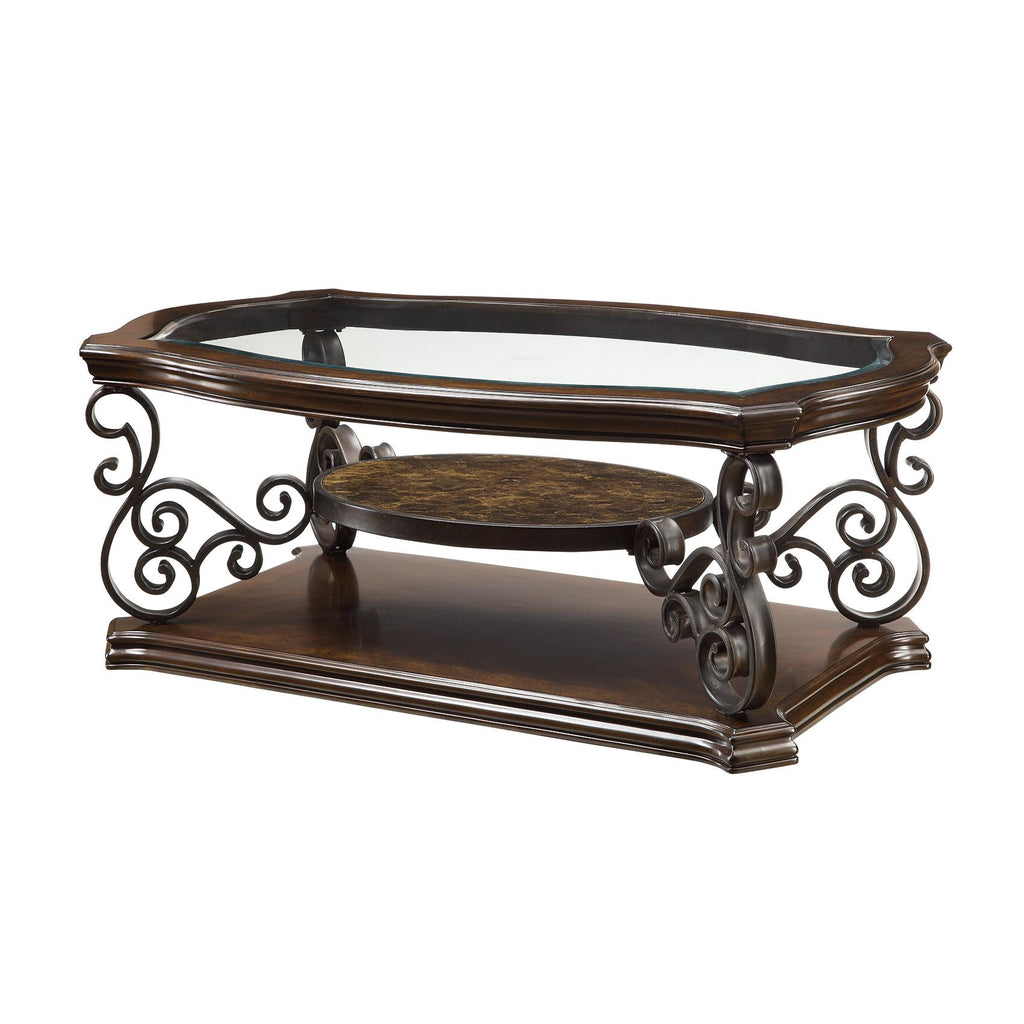 Make your neighbors jealous with this one-of-a-kind occasional table set. With ornate metal scrollwork, beveled wood edges, and tempered glass top, this will certainly be the showpiece of your living room. Its sturdy glass top will be able to handle serving guests, as well as holding decorations. This gorgeous piece of furniture will be the envy of guests.