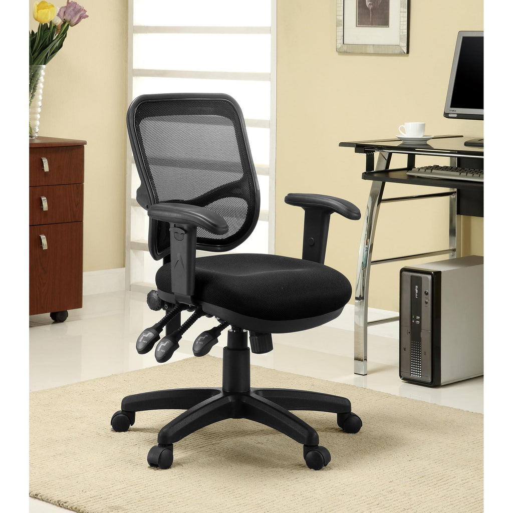 Work productively in exceptional comfort. A home or business office benefits from ergonomically upgraded seating, and this office chair fills the void. Stylish mesh on its seat back offers breathability to avoid moisture and mold. Sit comfortably on a molded seat and take advantage of multiple adjustability features. A spoke base with caster wheels ensures optimal mobility throughout the work day.