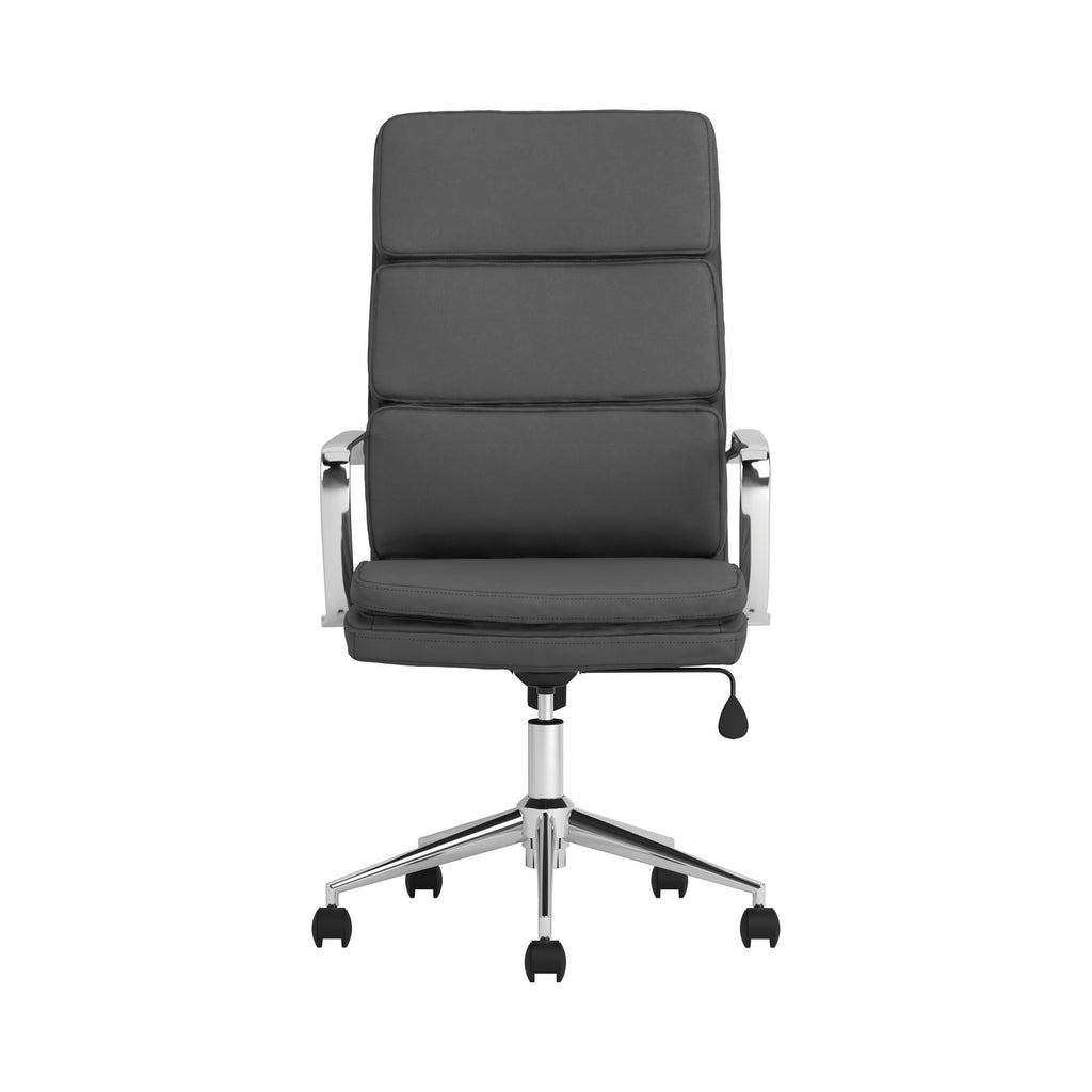 Update your workspace with this modern office chair. A chrome finish on the chair base and contoured arms are a modern touch as is the horizontal stitching on the seat back. This cushioned office chair features an ergonomically contoured back for ideal support and comfort, with armrests for added stability. This height-adjustable office chair comes with casters for easy mobility. Available in your choice of leatherette upholstery colors to suit the look of your office.