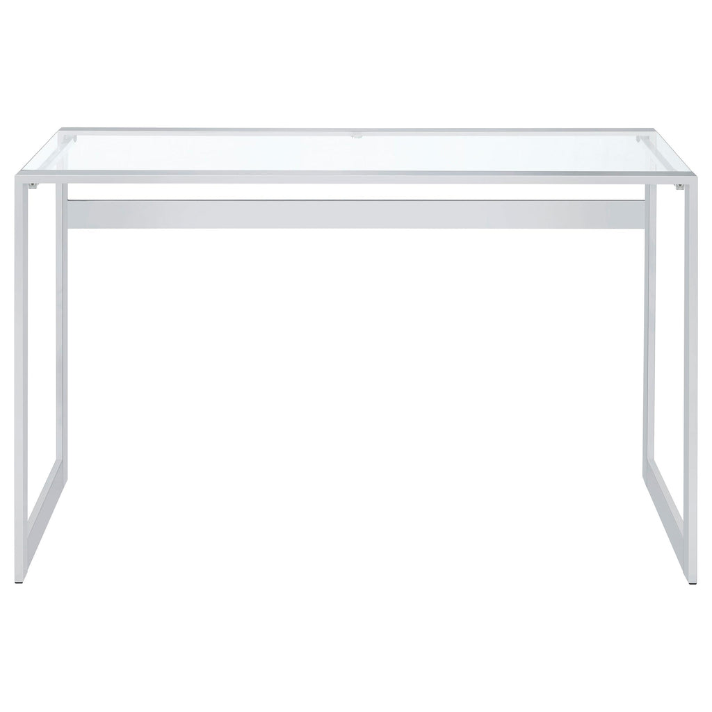 • Clear tempered glass top makes this writing desk a conversation piece