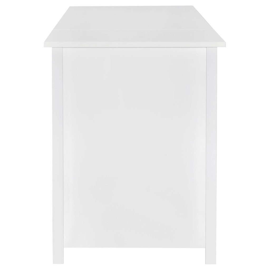 Create the perfect ergonomic home office setup with this contemporary lift top office desk. A smooth surface all around, this contemporary desk features clean lines and plenty of space for work or study. Spacious drawers help organize office files and essentials, each one fastened with a sleek pull in a shiny brushed zinc finish. Need extra writing space or a place to keep coffee nearby? This clever desk features two pull-out trays, one on each side. Extra touches like smooth ball bearing glides and soft-close glides offer modern upgrades.