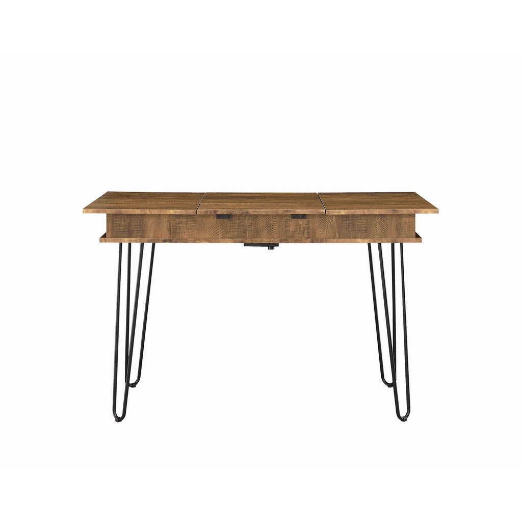 At first glance, it appears to be a simple writing desk with a hint of traditional charm. Yet when you flip open its top and pull out its sliding tray, and it reveals a plethora of pleasing features. Four spacious compartments offer discreet storage for your valuables. A built-in power outlet provides a useful charging station for electronics. With sleek, curved legs and a rustic amber finish, this versatile desk exudes convenience and class.