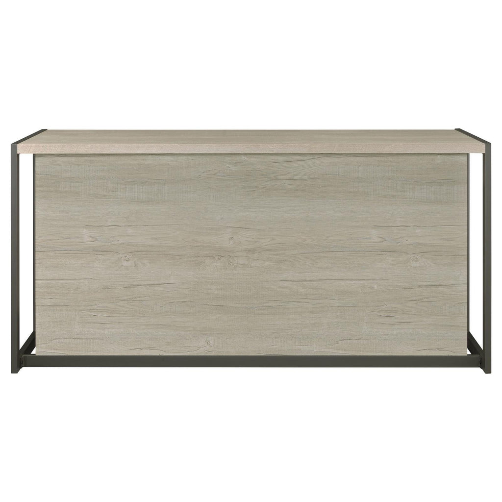 Elevate your contemporary home office and organize your supplies with this spacious contemporary office desk, featuring a light and bright whitewashed grey finish that maintains a clean look and feel to the space. Four drawers, including a deep file drawer, allow you to organize important documents, fastened with gunmetal finished pulls that coordinate with the grey finished sled style base.