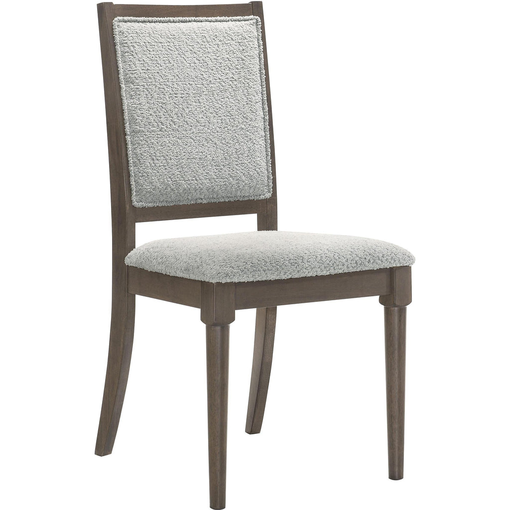 Create an inviting, contemporary dining space with this stylish dining set. Anchored by a sleek, rectangular dining table and complemented by plush side chairs, this set combines comfort with modern aesthetics. The table and chairs feature a sophisticated molded trim, offering a touch of artistic flair, while the chairs add texture and warmth with their plush upholstery. Perfect for family meals or elegant dinners, the set brings a touch of refinement and character to any home. This set includes one dining table and four chairs.