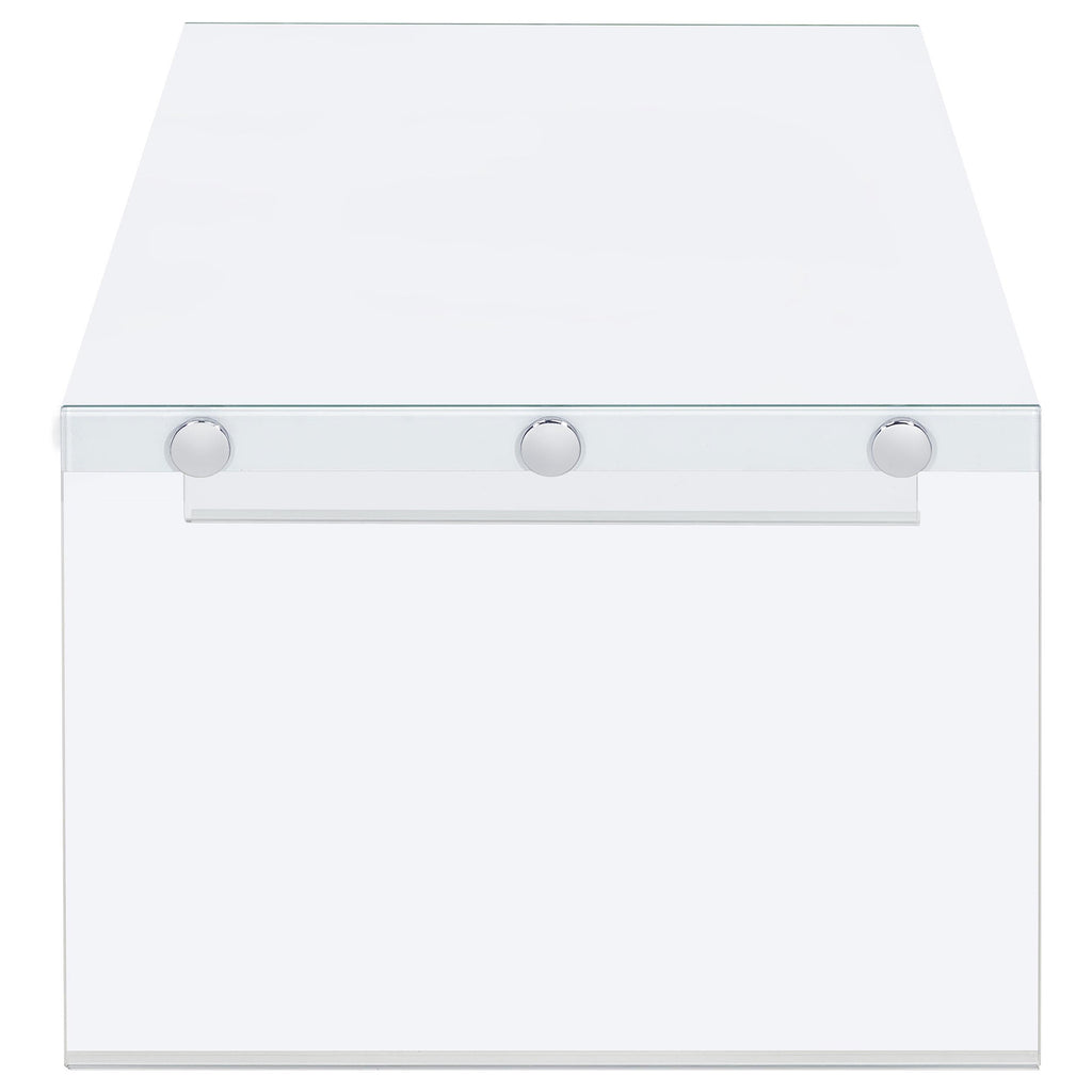 Elevate your living room with this ultra-modern rectangular coffee table, designed to blend sleek aesthetics with functionality. The engineered wood top showcases a white high-gloss finish, delivering a clean, contemporary vibe. Clear tempered glass side panels create a striking floating effect while ensuring stability. Ideal as a cocktail table, this piece is perfect for both everyday use and entertaining. Its minimalist design effortlessly complements modern interiors.
