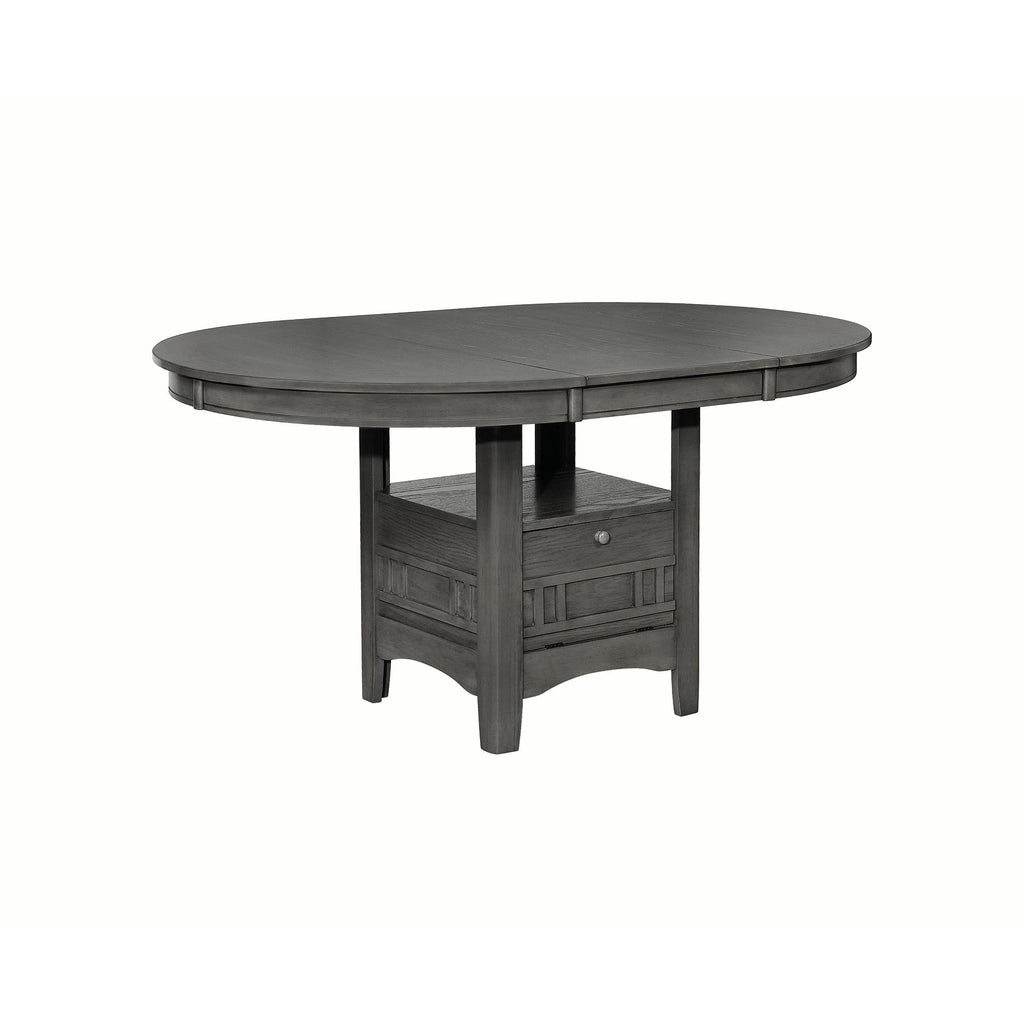The ultimate in versatility and engaging style, this wood dining table is a perfect centerpiece in a dining room or breakfast nook. The ingenious base features both closed storage and an open shelf, creating opportunities for storage and display. A medium grey finish is a contemporary addition to Asian hardwood and MDF construction. The table is complete with an 18-inch extension leaf perfect for welcoming friends to gather for a meal. Clean lines are accented with arched trim that adds a pleasing hint of detail.