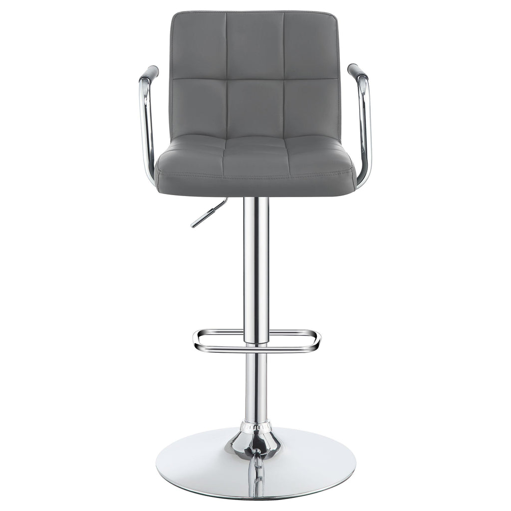 Upgrade your seating experience with this sleek hydraulic gas lift adjustable bar stool, perfect for modern kitchens or home bars. The stool features a cushioned seat with stylish tufting and a durable faux leather finish, providing both comfort and easy maintenance. Its adjustable height mechanism lets you find the perfect fit, while the chrome base and footrest add a polished, contemporary look. The integrated armrests offer added support, making it ideal for leisurely meals or casual gatherings. Enjoy both functionality and style with this versatile, high-quality bar stool.