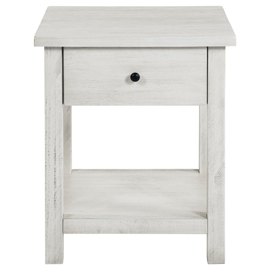 This rustic end table merges classic style with practical storage, making it a charming focal point in any living room. Built from pine wood and reinforced with engineered wood, its square silhouette highlights a subtle, timeworn aesthetic. An integrated drawer keeps items neatly stowed, while the lower shelf offers additional display space. This side table works beautifully as an accent in a modern farmhouse or relaxed, casual setting.