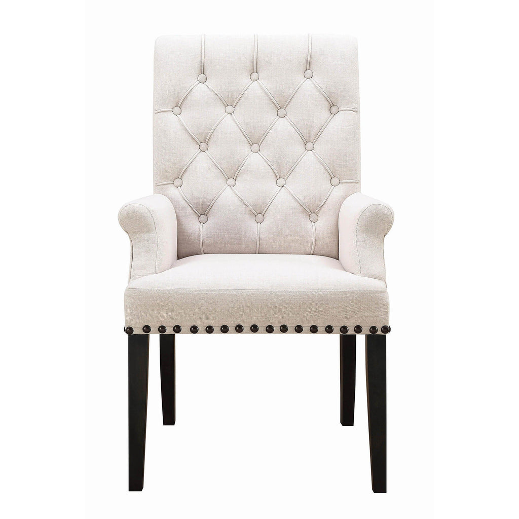 An exceptional dining set is inspired by European decor for a gorgeous dining space. The expansive rectangular tabletop is supported by a dual pedestal base with a stunning silhouette. Find upholstered dining chairs with a rolled backrest design for a traditional chest. The chairs are further enhanced with nailhead trim along with the frame. Supported on tapered legs, the dining seats are bound to provide you with a delightful dining experience. This set includes one dining table, four side chairs and two arm chairs.