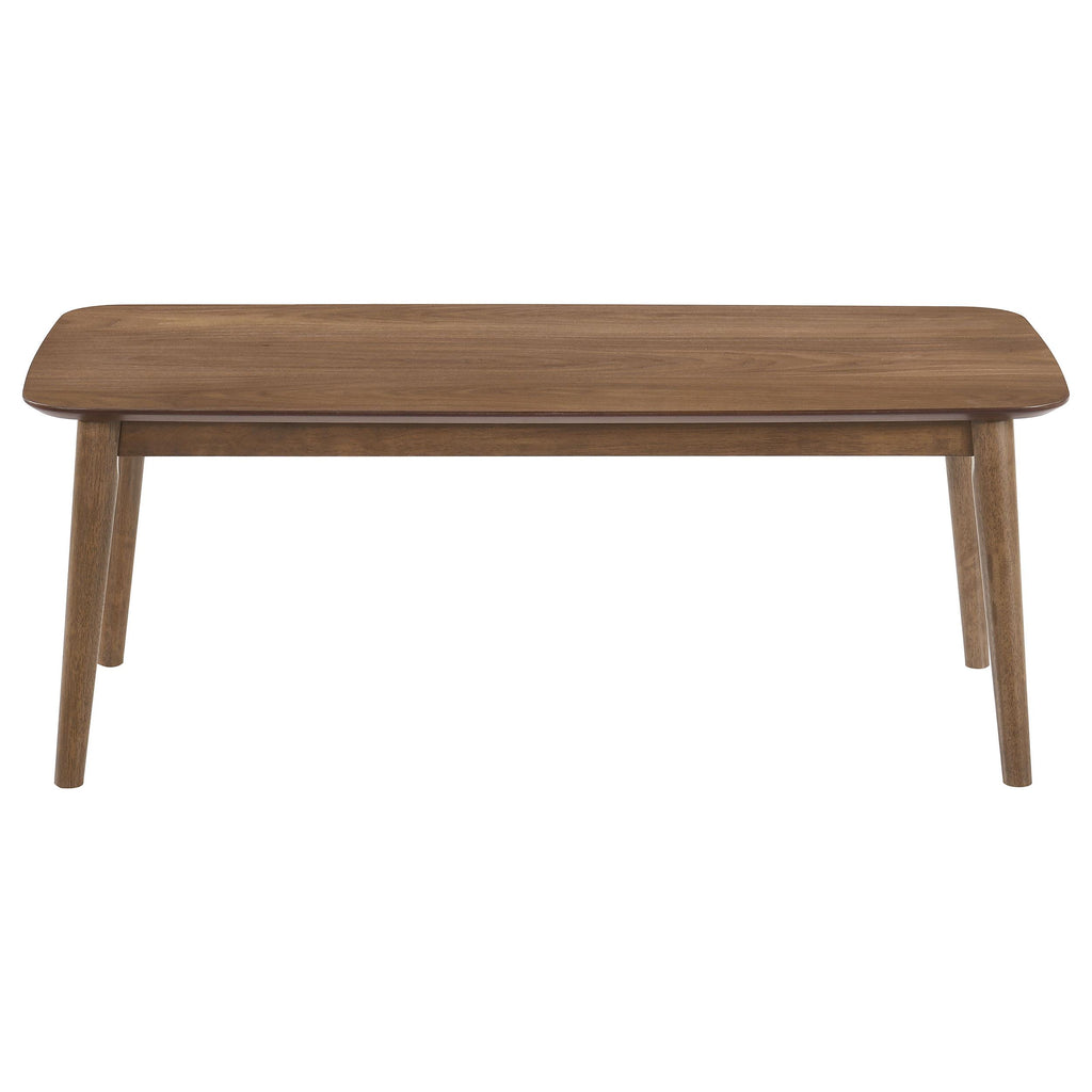 Create a subtle vintage flair with this mid-century modern three-piece occasional set, complete with a coffee table and two end tables. Keep books, table lamps and more on this collection of essential living room furniture pieces. Designed with a natural tone walnut veneer finish throughout, this collection offers a warmth to a space. Flared and tapered legs push the retro-inspired vibes, while a chamfered edge of each top offers a softer, more graceful look and feel. Arrange this coffee table and end table set in a contemporary or bohemian-inspired living room for a playful, elegant aesthetic.