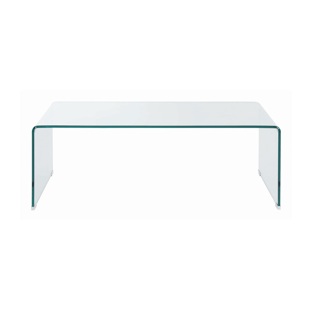 This rectangular coffee table is crafted from tempered bent glass, blending modern elegance with superior durability. Its seamless one-piece design eliminates the need for assembly, offering immediate convenience and use. The smooth curved edges enhance safety and add a touch of sophistication, while the transparent glass creates a spacious and versatile aesthetic. Perfect for contemporary living rooms, this coffee table serves as a sleek, functional centerpiece designed for lasting performance and style.