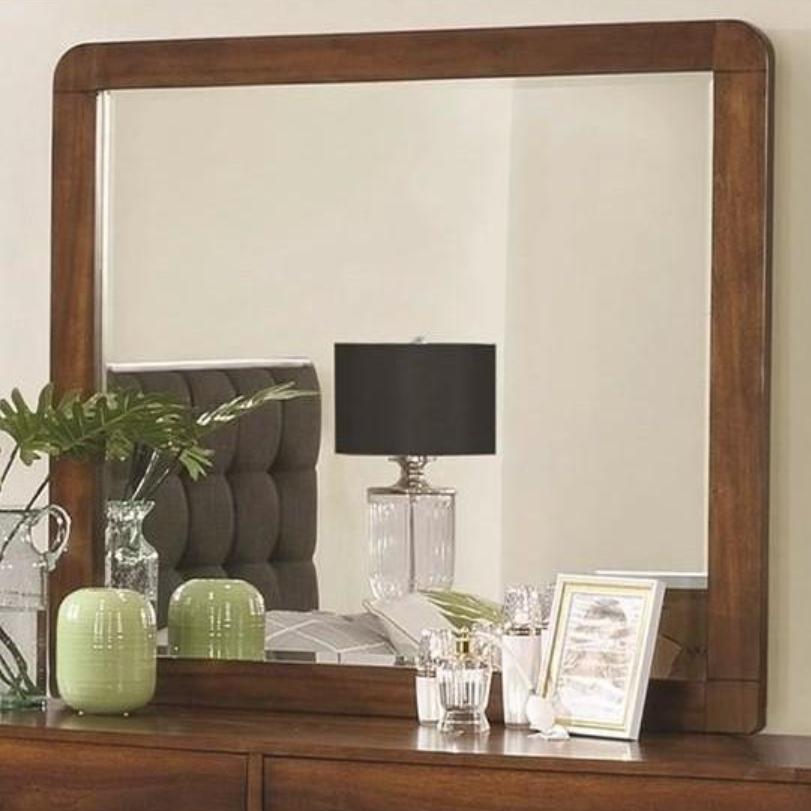 Open up your space with this sophisticated dresser mirror, crafted with a durable frame using pine, engineered wood, and walnut veneer. Designed with a rounded silhouette and clean lines, it combines retro-inspired elements with modern functionality. The square mirrored glass reflects light beautifully, while subtle textural details in the frame add warmth and character.
