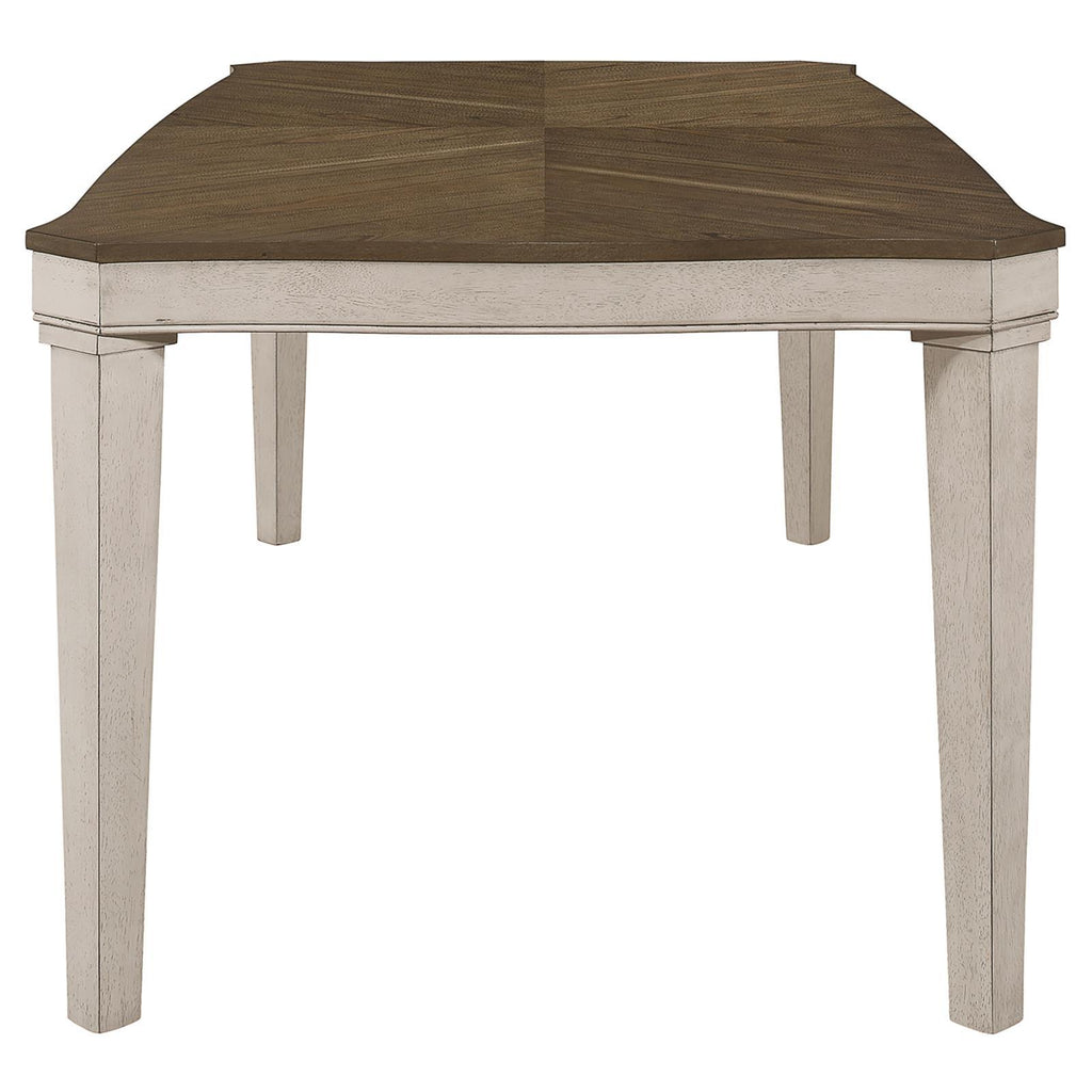 Transform your dining area into a cozy retreat with our modern farmhouse and coastal cottage dining table. The mindi veneer table top showcases a stunning starburst design, while the solid Asian hardwood legs provide sturdy support. The rustic cream finish on the table apron and legs adds a touch of country charm.