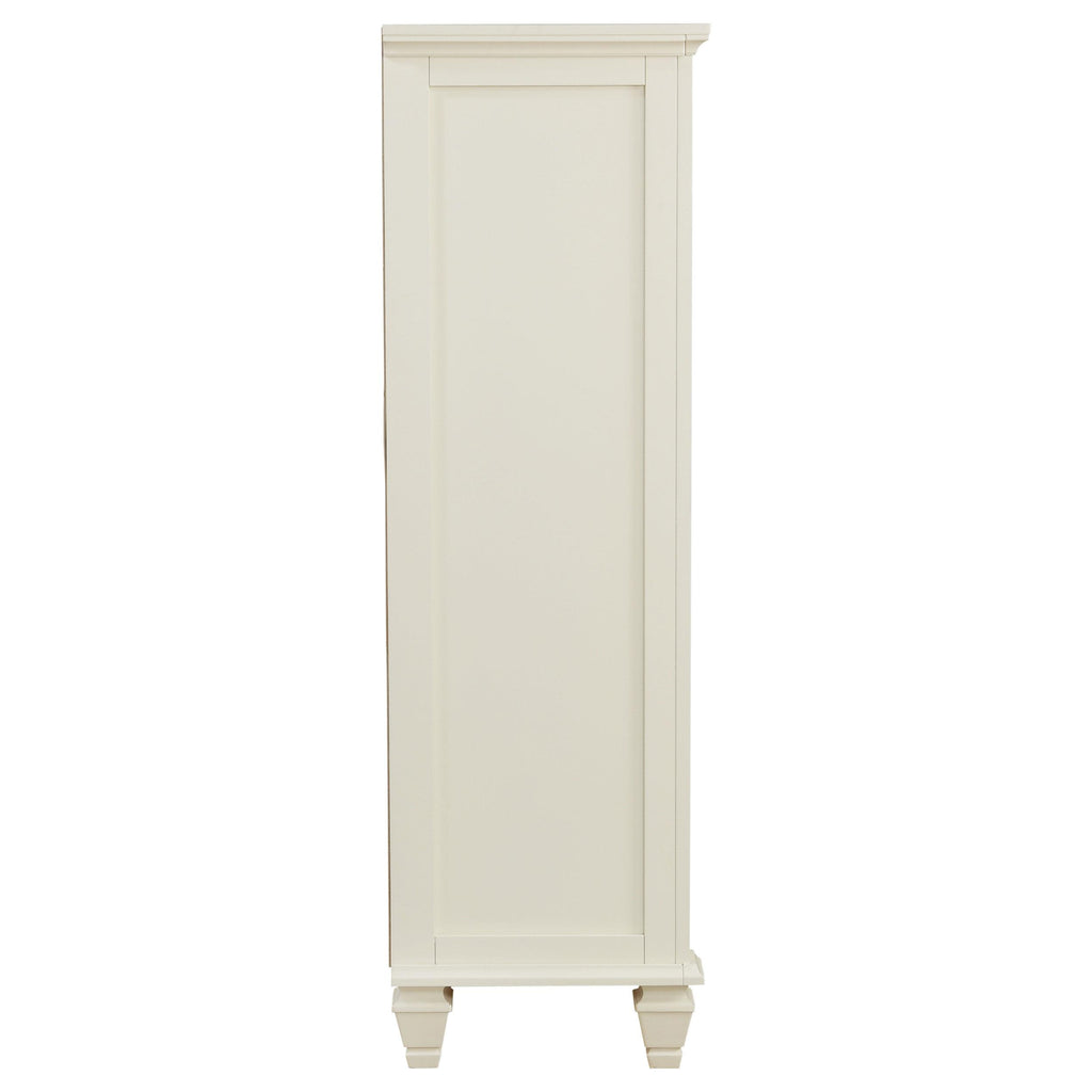 Add both storage and timeless elegance to your bedroom with this beautifully crafted chest of drawers. Featuring five spacious drawers, this chest offers plenty of room to organize your clothing, linens, and other essentials. The felt-lined top drawer provides added protection for delicate items, while the brushed nickel hardware adds a touch of modern sophistication. Constructed from solid hardwood and engineered wood, this chest is designed for durability and lasting appeal. Finished in a neutral color, it complements both traditional and transitional bedroom styles, bringing both beauty and functionality to your space.
