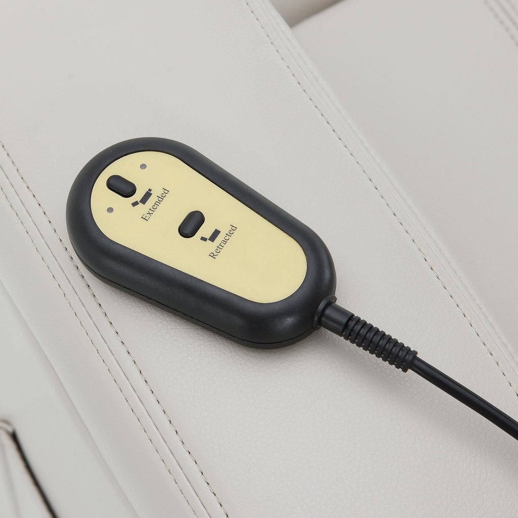 Fall in love with the sleek look and easy power lift functionality of a modern power recliner in soft, supple faux leather. Impeccably designed for both style and indulgent comfort, the recliner features pocket coils and foam cushioning, with track-style armrests that are capped with cupholders perfect for keeping refreshments at your fingertips. The chair is controlled via remote, perfect for easy operation of both recline and lift, making it easier than ever to find your perfect position. A side pocket completes the look with added functionality, creating the perfect spot to stash your tablet, a book, or even the television remote control. A plush headrest and covered leg rest ensure your ultimate comfort in a modern power lift recliner steeped in indulgence.