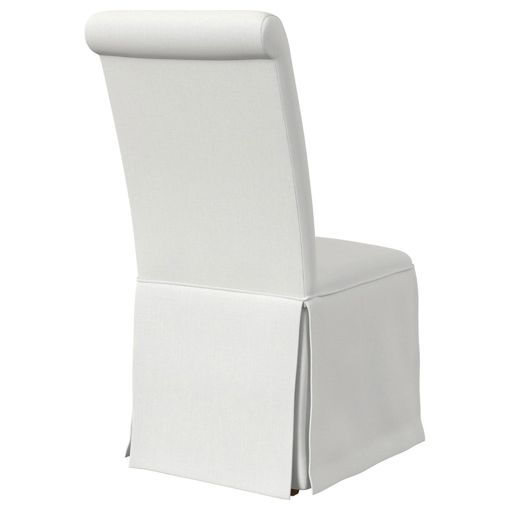 Put a stylish, somewhat formal spin on your dining room decor with a set of two classic parson chairs. Each features a tall back with an armless profile for impeccable comfort and elegance. The chair features plush foam padding, complete with neutral upholstery for a fresh, inviting presence at your dining table. The chairs showcase fully skirted silhouette, adding a touch of flowing movement. Tall, rolled backs ensure supportive seating for friends and family, wonderful for daily and occasional use.
