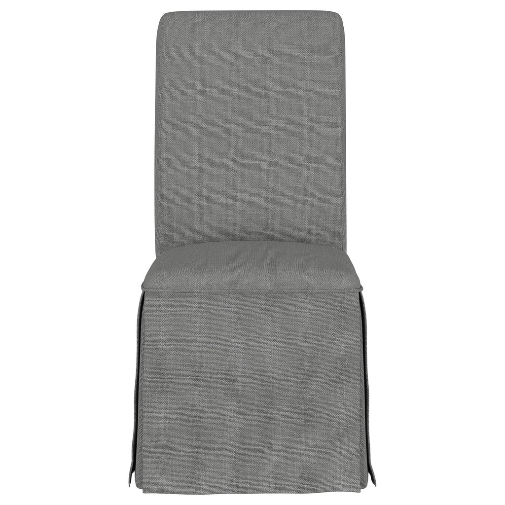 Put a stylish, somewhat formal spin on your dining room decor with a set of two classic parson chairs. Each features a tall back with an armless profile for impeccable comfort and elegance. The chair features plush foam padding, complete with neutral upholstery for a fresh, inviting presence at your dining table. The chairs showcase fully skirted silhouette, adding a touch of flowing movement. Tall, rolled backs ensure supportive seating for friends and family, wonderful for daily and occasional use.