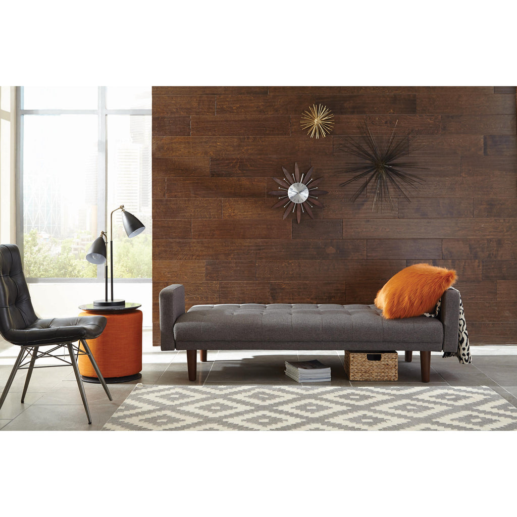 Kick back, relax, and enjoy exquisite comfort. This soft, stylish sofa bed instantly upgrades your home's comfort level. high-density foam and sinuous spring decking provide firm yet gentle support. Its grey woven fabric upholstery is brought to life by the eye-catching look of elegant button tufting. A kiln dried hardwood frame and solid hardwood legs form a solid base, offering hours upon hours of restful relaxation.