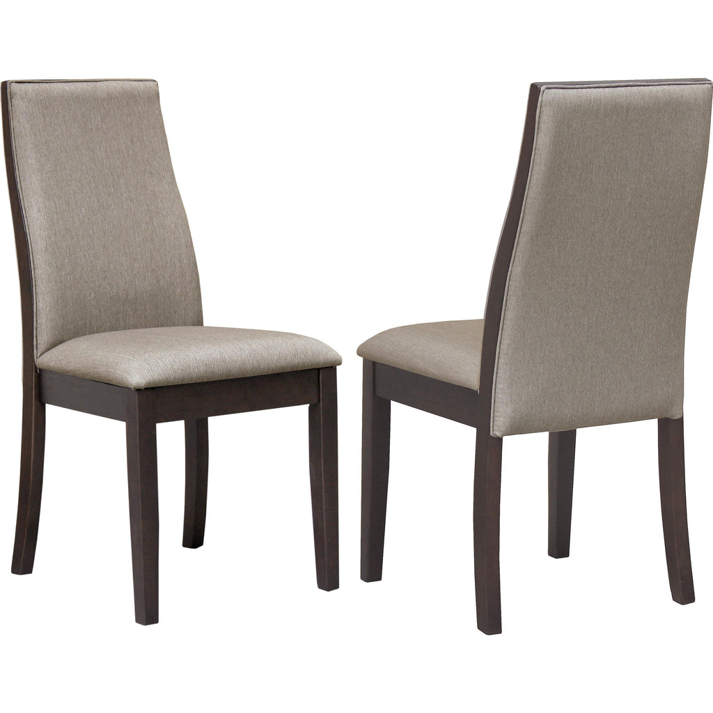 The Spring Creek 5-Piece Dining Set from Coaster Furniture is made with Asian hardwood and walnut sap veneers with an espresso finish. The table top features a natural walnut finish and a removable extension leaf for those extra guests while the side chairs feature grey upholstery along with the backrest and seat cushions. This set includes a dining table and four side chairs.