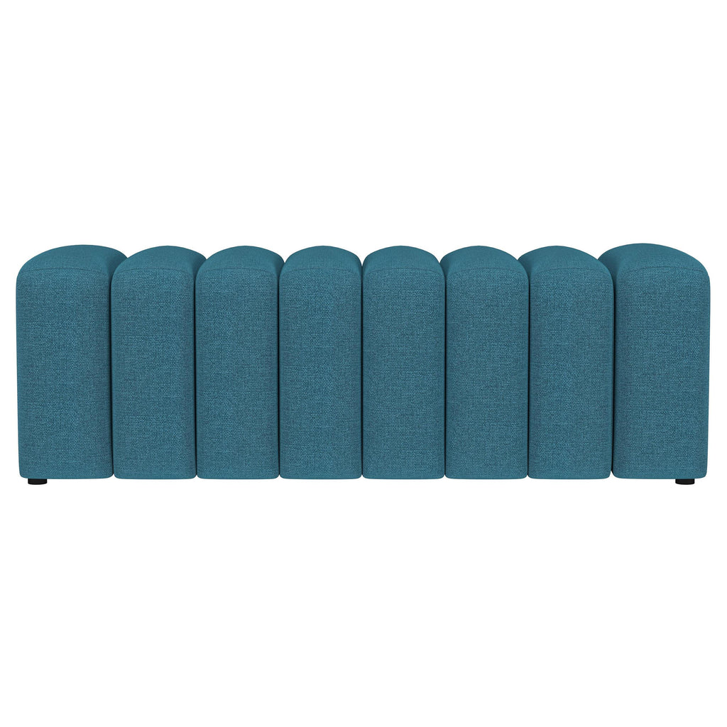 Introduce glam texture and dimension with a decorative upholstered bench. This modern creation features an undulating silhouette without arms or a back, offering sleek style and seating. Perfect for a sophisticated foyer or living room, it adds a pop of color and rich dimensionality with subtle variation in textured fabric. It makes a chic replacement for a coffee table in a linear sitting area, complete with foam cushioning that's firm enough to host a serving tray. Minimal feet create a seamless look and feel in any setting.