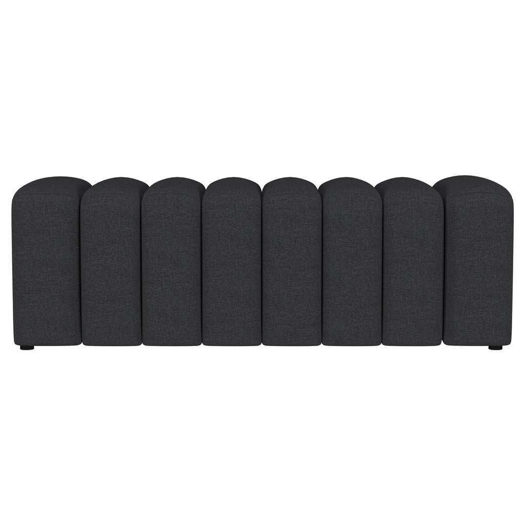 Introduce glam texture and dimension with a decorative upholstered bench. This modern creation features an undulating silhouette without arms or a back, offering sleek style and seating. Perfect for a sophisticated foyer or living room, it adds a pop of color and rich dimensionality with subtle variation in textured fabric. It makes a chic replacement for a coffee table in a linear sitting area, complete with foam cushioning that's firm enough to host a serving tray. Minimal feet create a seamless look and feel in any setting.