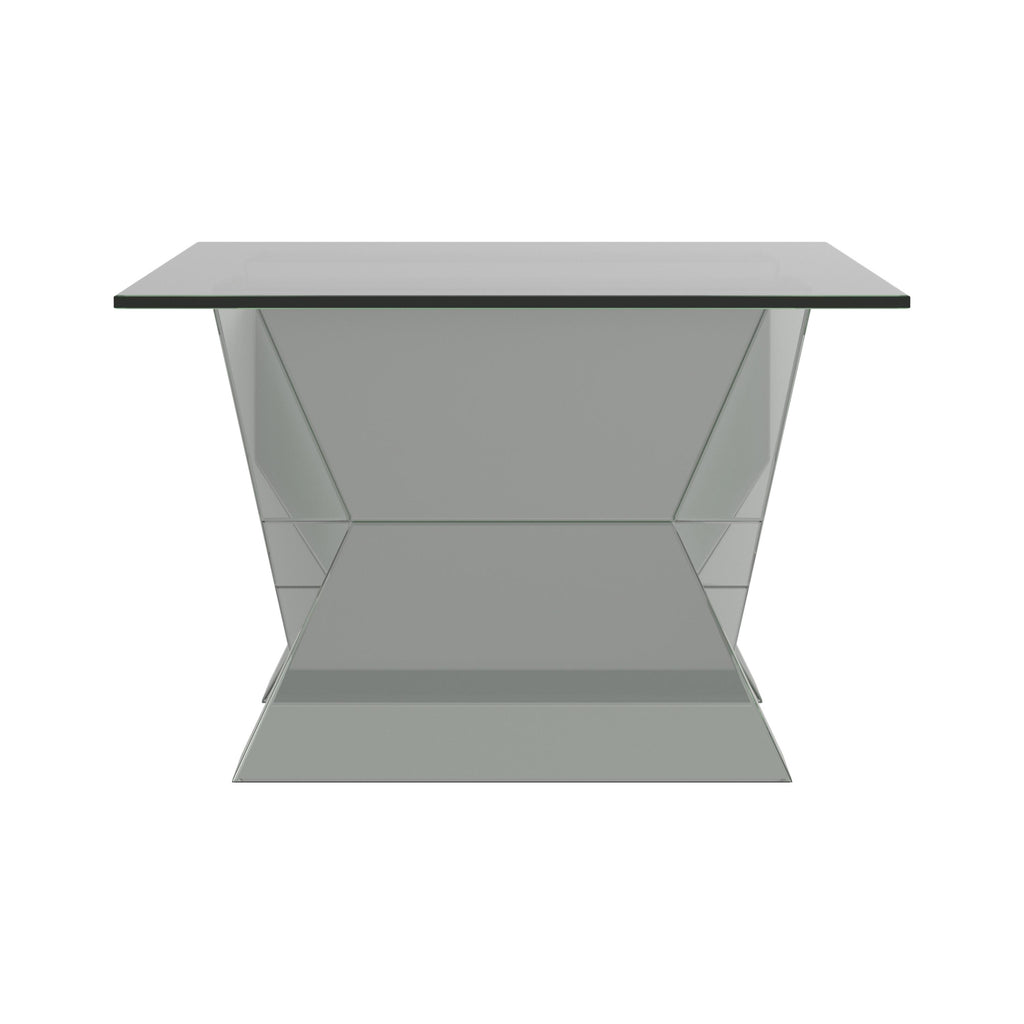 • Mirrored coffee table with an eye-catching V-shaped base