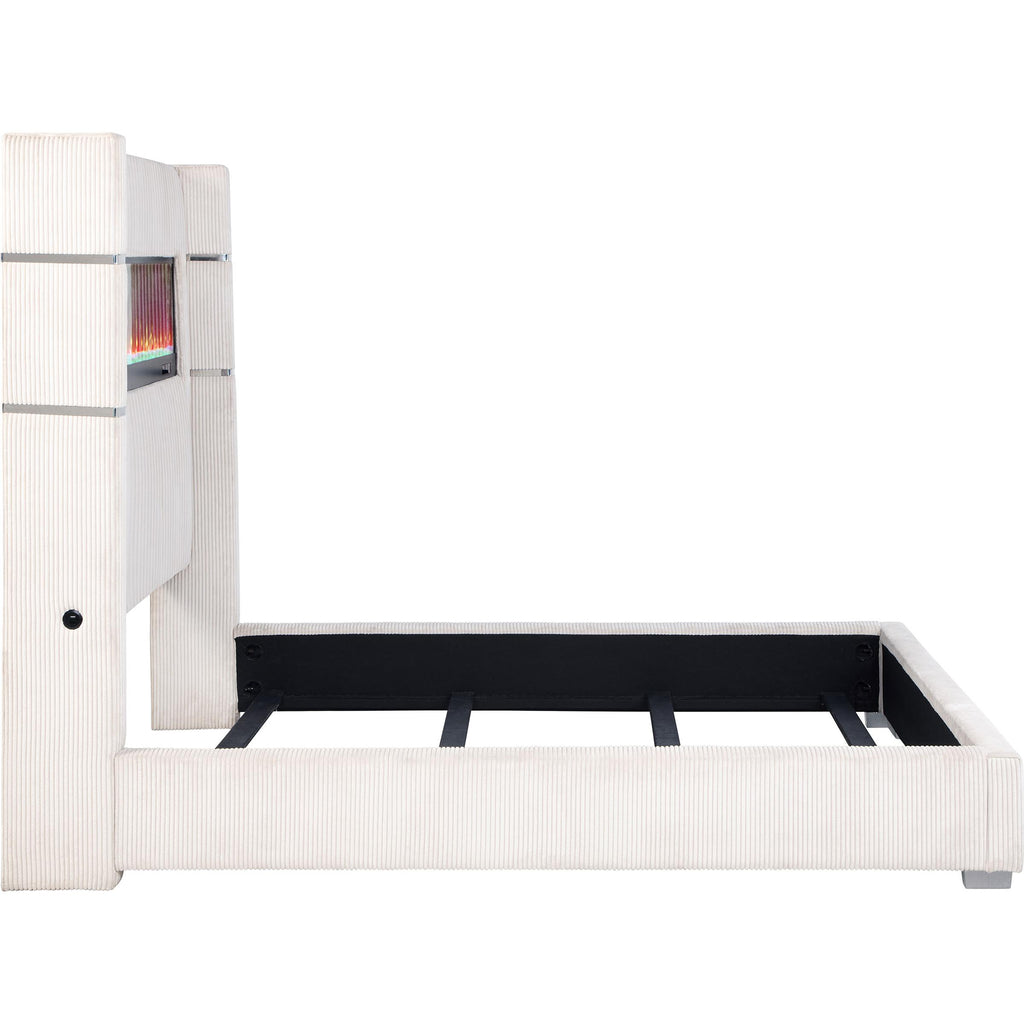 Transform any bedroom into a captivating sanctuary with this show-stopping bed, designed to draw attention and invite comfort. Available in plush corduroy upholstery, this bed effortlessly blends soft texture with modern sophistication. The integrated flame box offers a mesmerizing visual with 16 adjustable color options, all controlled via a convenient remote. With its eye-catching design and cozy feel, this bed elevates the bedroom experience while offering a stylish focal point.